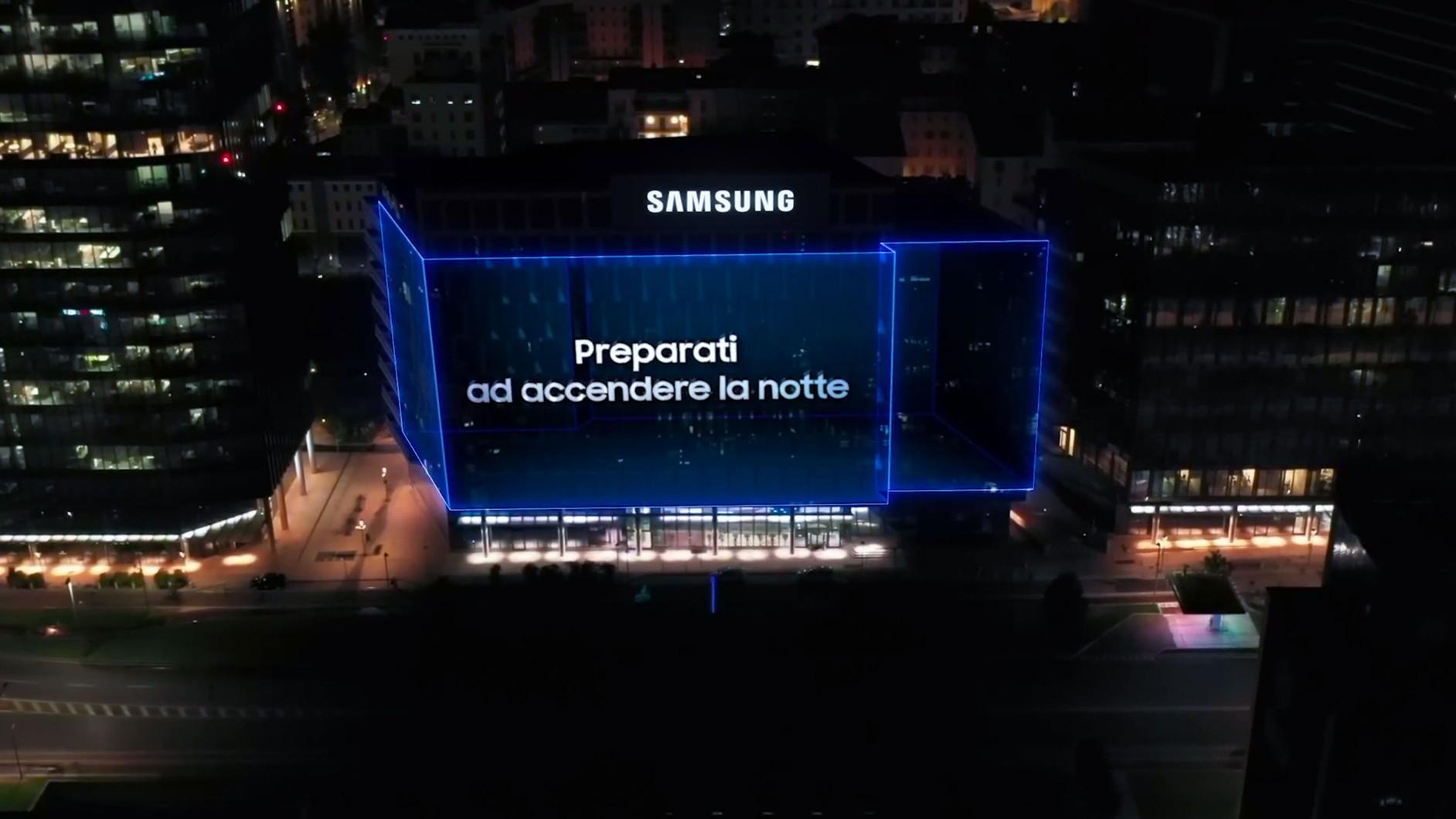 Performance, night photography and the iconic three cameras. These are the elements at the basis of the digital mapping on the Samsung Building in Milan. With Cheil, the structure has transformed into an unexpected 3D container for the spectacular teasing images of the Galaxy S23.