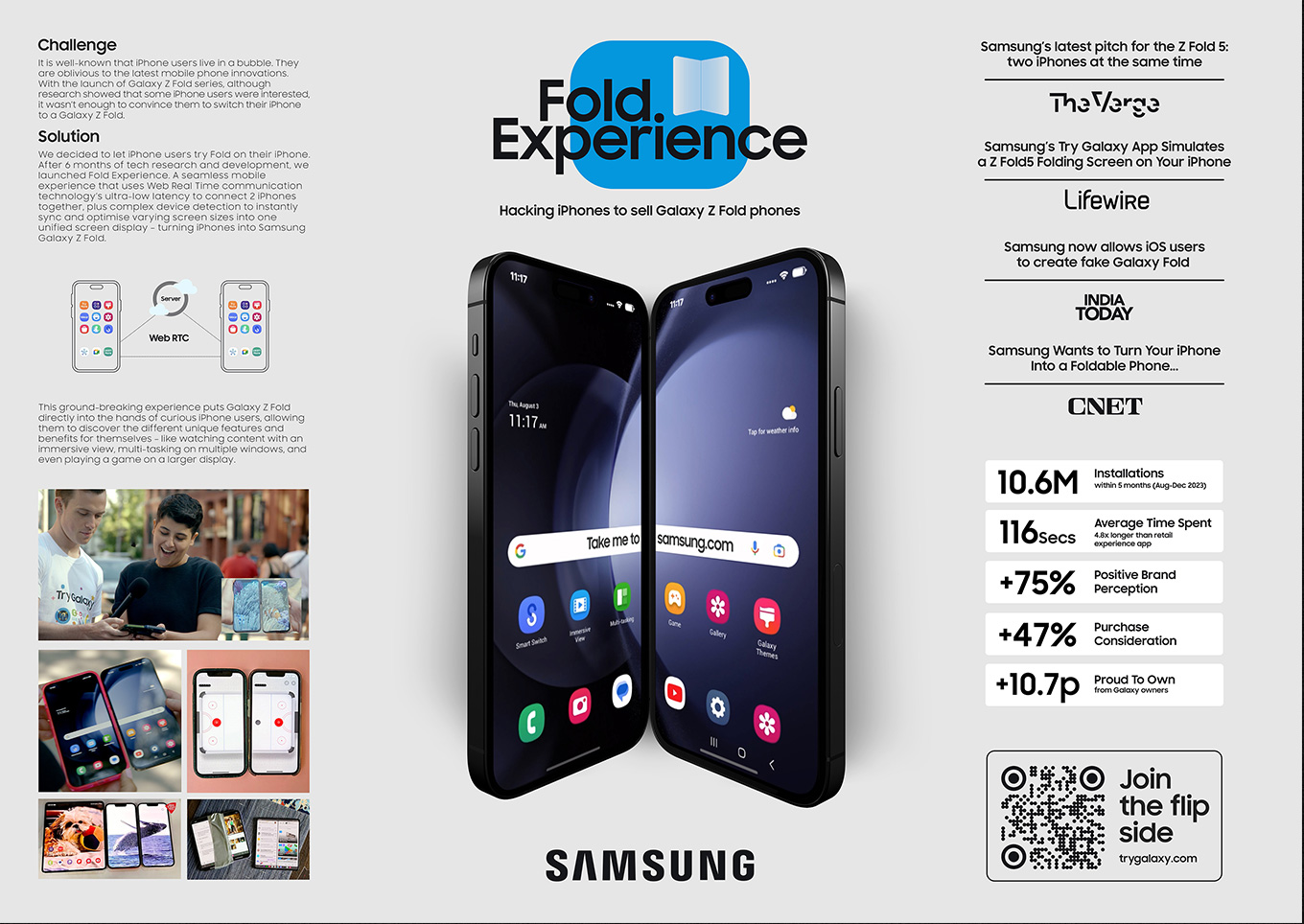 We needed a way to increase trial and put a Galaxy Z Fold into their hands even if it wasn't the actual Galaxy Z Fold. Recognising the challenge of engaging iPhone users and bridging the gap between curiosity and confidence, we thought of ways to replicate the Fold experience right in their hands.