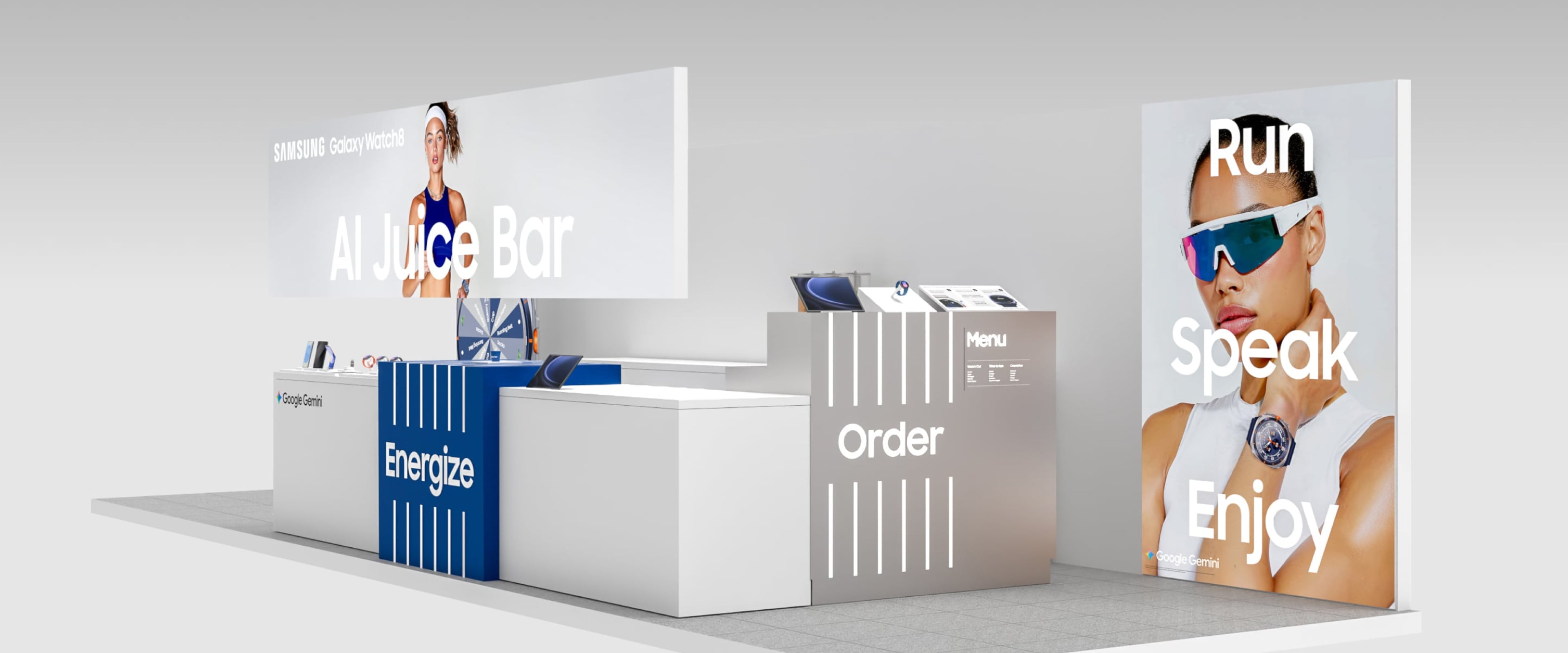 A voice-activated energy bar where runners order an energy shot by speaking to the Galaxy Watch through Google Gemini.
