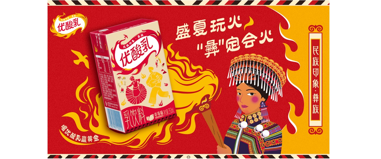 As a national brand cherished by generations, Yili Youngfun has always regarded promoting fine traditional Chinese culture as its brand mission. For this newly launched ethnic limited-edition series, the design centers on the fire element from traditional Yi culture. Through the custom packaging for the Torch Festival, it showcases the Yi people’s reverence for fire and the significance of the Torch Festival.