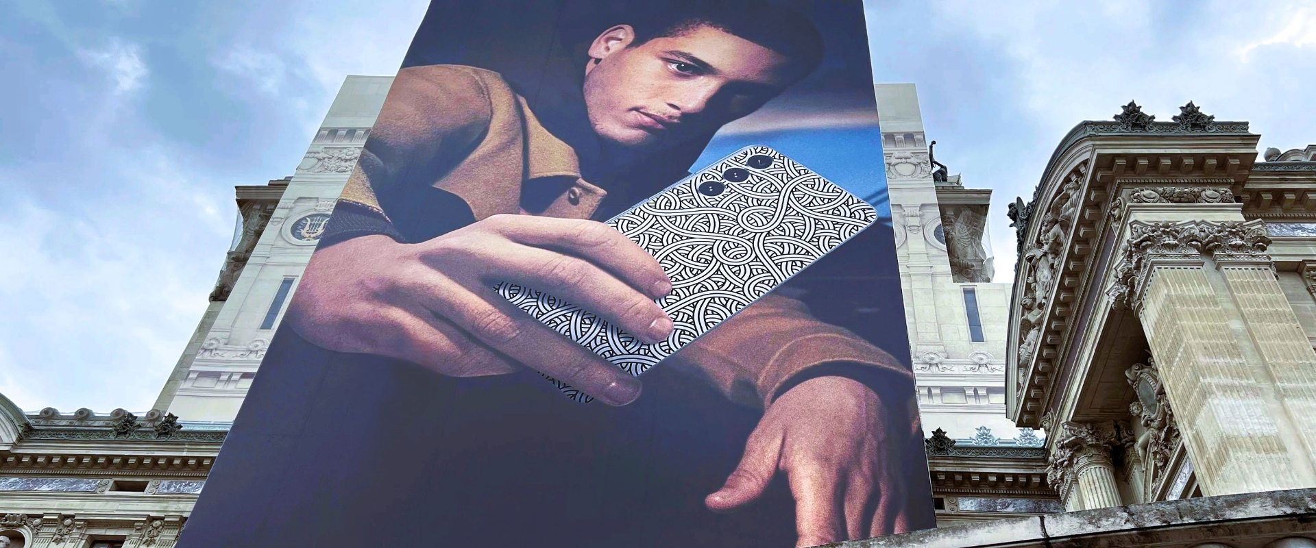 The visual featured the design of the Samsung S22, enhanced through an artistic collaboration with Jordane Saget, who customized the artwork live, turning the advertising space into a true artistic performance.