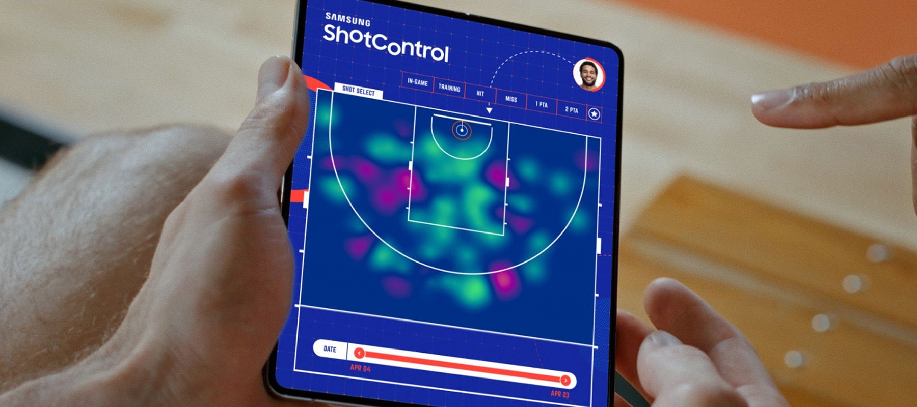 After building the system in the training facility. We created a bespoke app that the players and their coach could use on their Galaxy Fold phones. The app gives live insights into the accumulation of data ShotControl gathers. They can see their own accuracy over time, position, condition and technique, and compare it with the data of their peers. The development of ShotControl took two years and was created for Samsung by Cheil Benelux and technical partner Vonk, in close consultation with the 3x3 basketball players, the Dutch Basketball Federation.