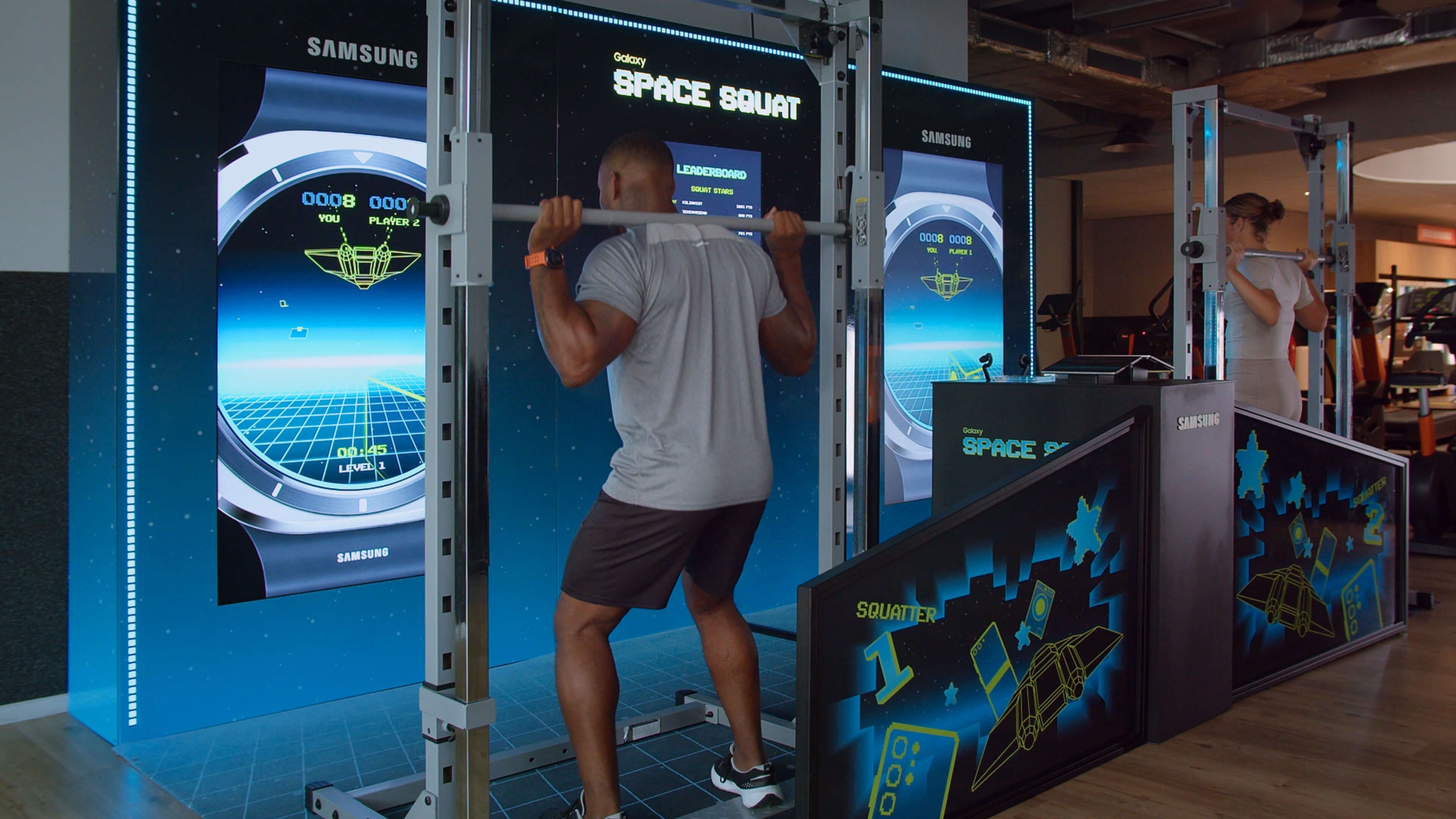 Basic-Fit ✕ Samsung have created Galaxy Space Squat; an interactive fitness experience that turns gym-goers into human game controllers.